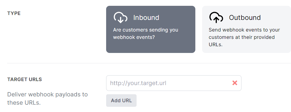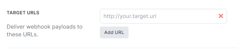 The Target URL is where we will relay requests. If you are receiving inbound webhook requests, it might make sense to provide a default target URL. You can do this in your hook's settings. Provide one or more target URLs, and we will pass on your webhook requests to each of the URLs: