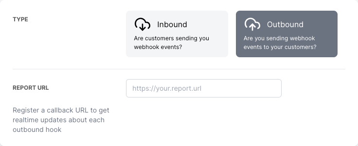 A Hook acts as a proxy for webhooks between you and your customers. You primarily interact with your hook by sending HTTP POST requests to the Hook URL. The first thing to decide when creating a hook is which direction the traffic will flow.